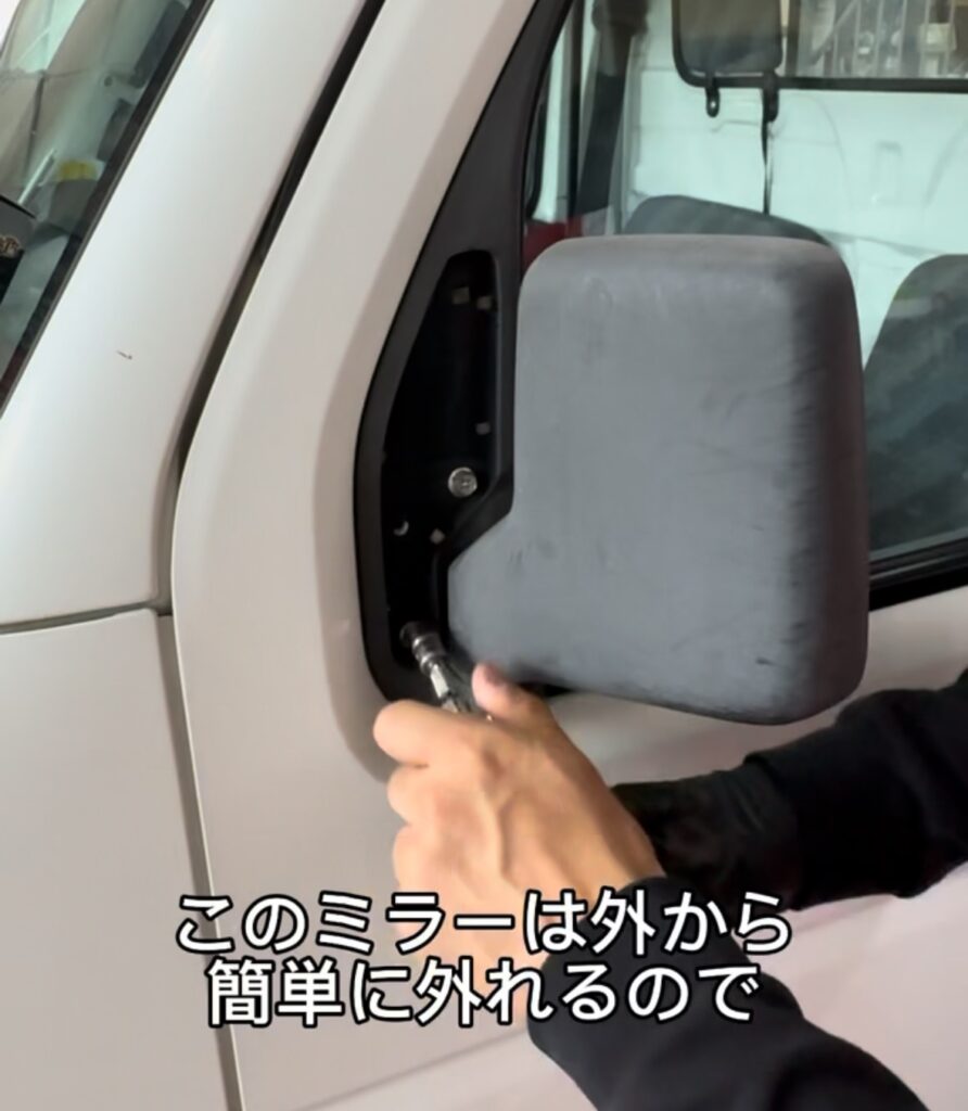 このミラーは外から簡単に取り外せるタイプなので、外してから塗装します。