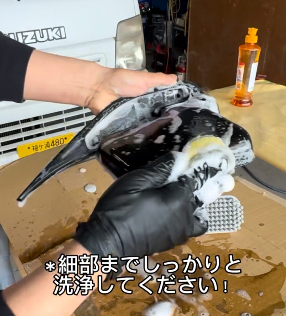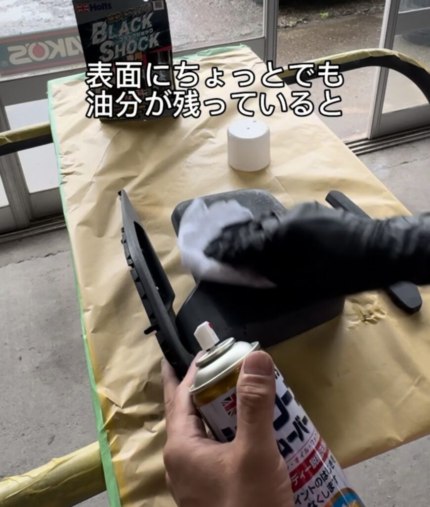 ここで汚れや油分が残っていると、塗装の密着に影響が出でるので丁寧に行いましょう。
