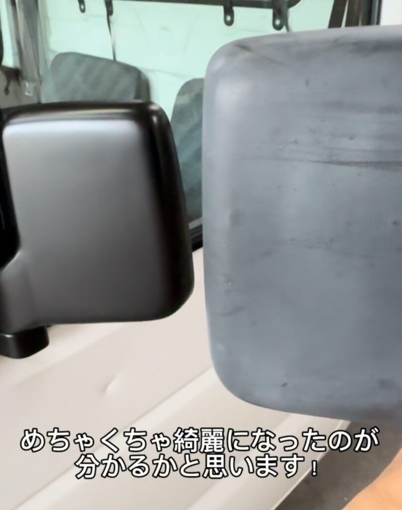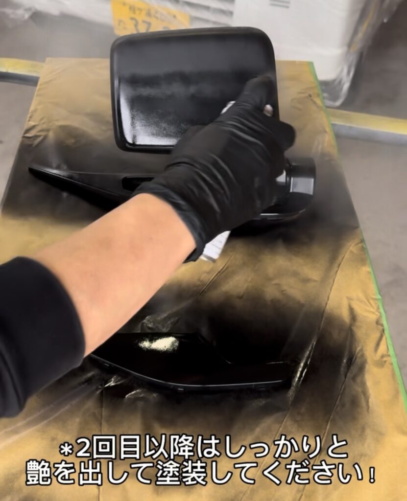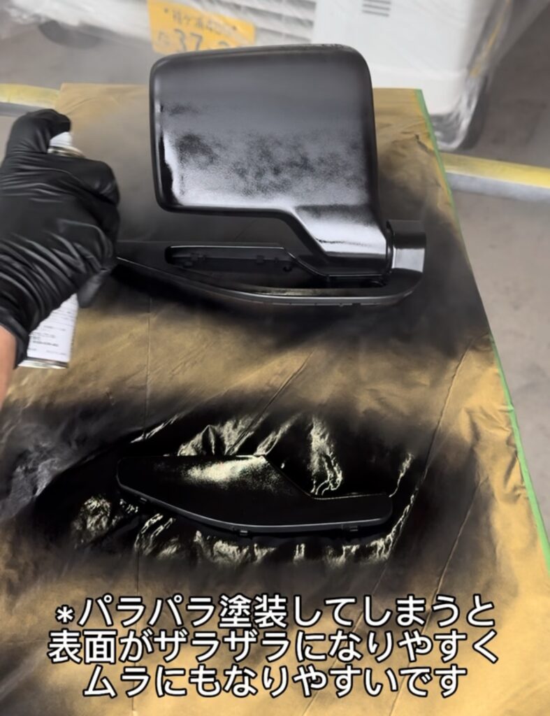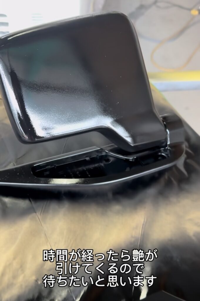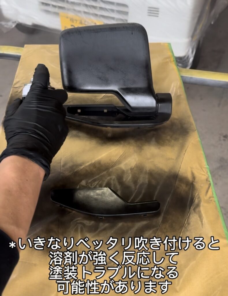 白く劣化してしまった未塗装のドアミラー部分を施工していきます。